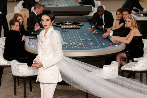 العارضة الأمريكية كيندال جينر تقدم أحدث أزياء موسم الخريف 2015/2016 داخل كازينو في باريس، 7 يوليو/تموز 2015