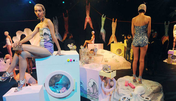 عرضت مصصمة الأحذية صوفيا ويبستر تشكيلتها الجديدة من الأحذية في منصة تم تصميمها على أنها غسالة في عالم حوريات البحر. وانعكس الطابع المائي على الأحذية أيضاً.