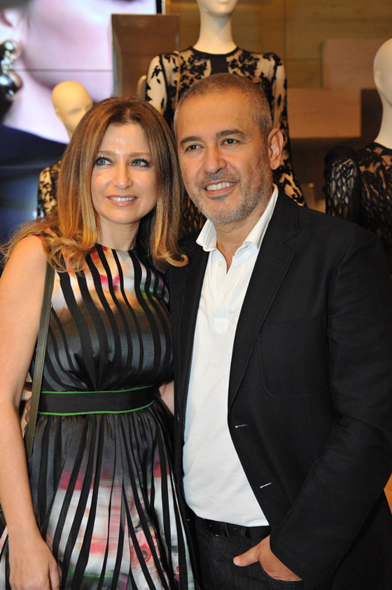 إيلي صعب برفقة زوجته التي ترتدي أحد تصاميمه