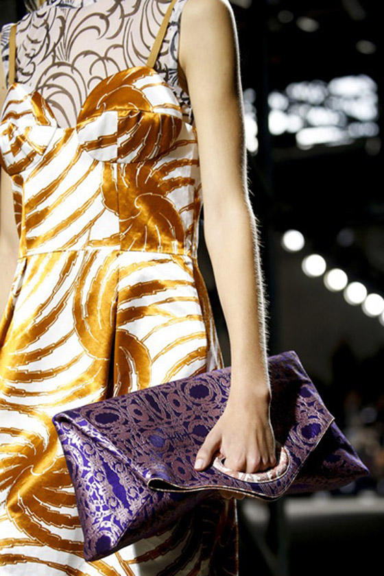 كلتش أنيق منقوش بزخرفات مميزة وفتحه صغيرة تمكنك من حمله بطريقة مميزة من توقيع درايس فان نوتن Dries Van Noten.