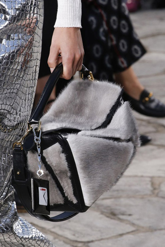شنطة Tote مصممة من الفراء الرمادي من توقيع لويفي Loewe