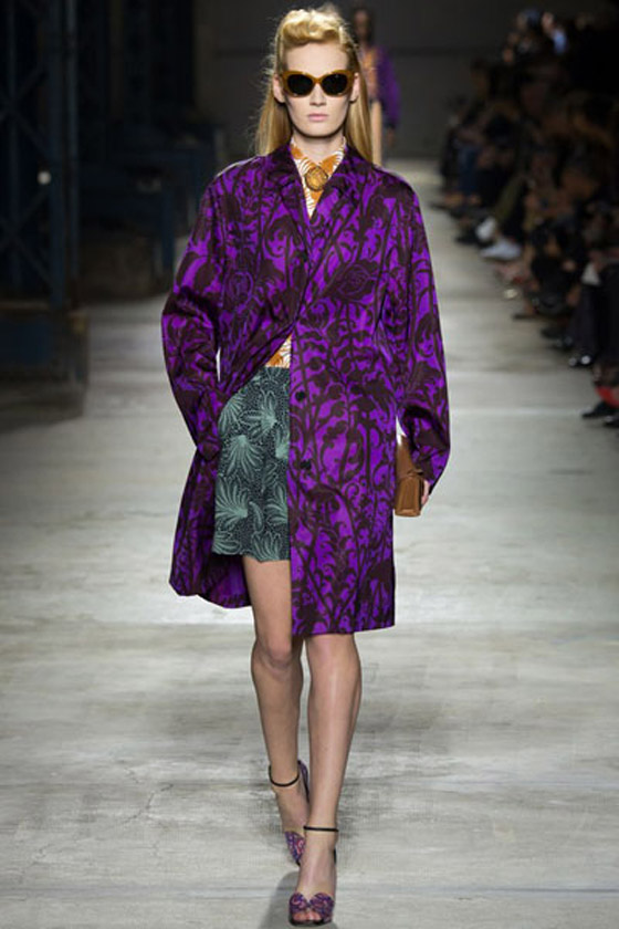 معطف أرجواني مزين بنقشات مميزة من توقيع درايس فان نوتن Dries Van Noten.