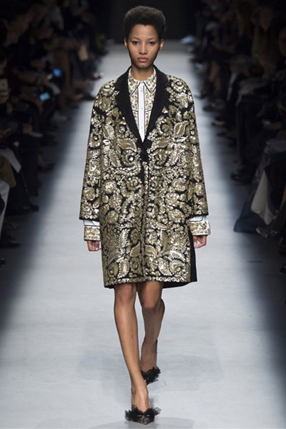 معطف فاخر مزدان بتطريزات ذهبية من توقيع روشاس Rochas.
