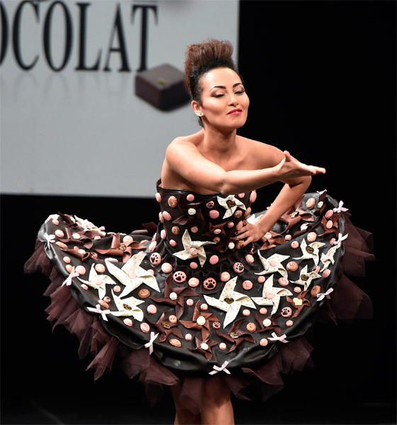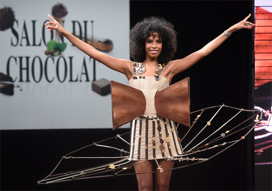 افتتح مهرجان خاص بالشوكولاتة في العاصمة الفرنسية باريس، وارتدت عدد من نجمات المجتمع بفرنسا أزياء لمصممين من كل أنحاء العالم مصنوعة من الشوكولاتة في تقليد فرنسي سنوي.