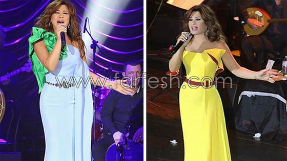 اختارت النجمة نجوى كرم من تصميم نيكولا جبران ثوبين طويلين ظهرت بهما خلال حفلات غنائيّة قدّمتها.