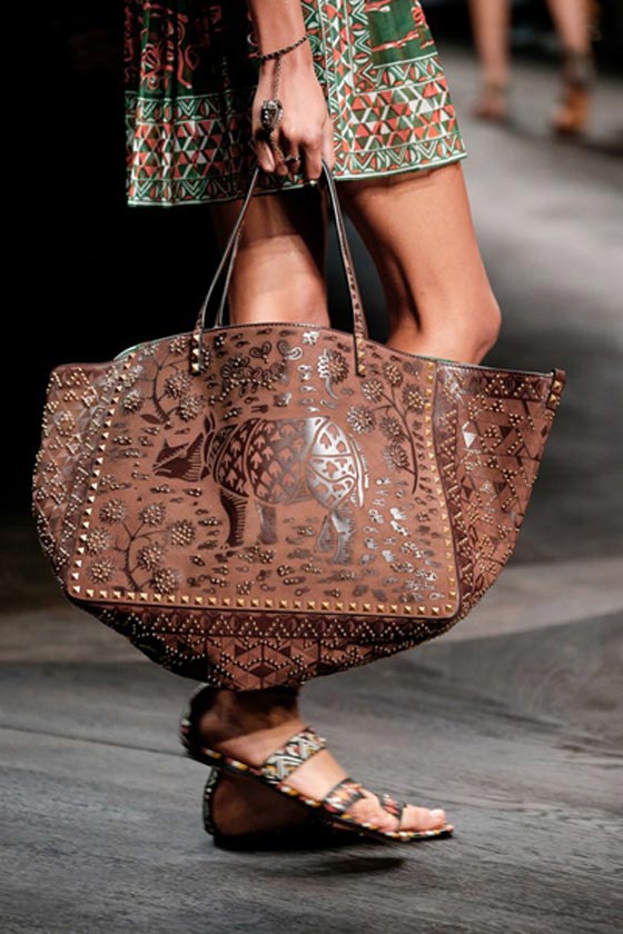 وعلى الرغم من أننا نتناول اليوم مجموعة ربيع وصيف 2016 إلا أننا رأيناها الأنسب لإطلالات موسمي الخريف والشتاء، وذلك بفضل الخامات الفاخرة والألوان الرصينة ذات الدرجات الداكنة. ويبدو أن اللمسة الأفريقية التي طغت على أزياء الدار الإيطالية قد طالت أيضاً مجموعة حقائبها، فبدا ذلك جلياً في الأكسسوارات والنقشات التي ازدانت بها أغلب القطع.