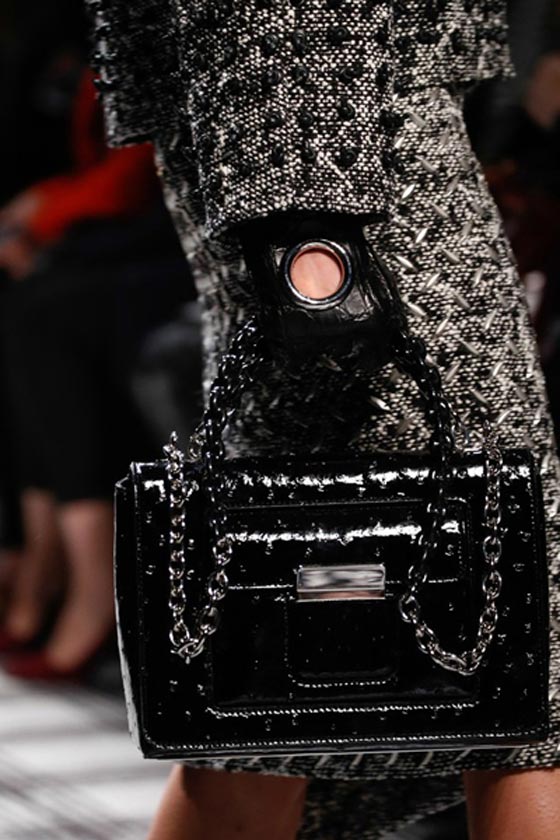 شنطة سوداء مصممة من الجلد اللماع ستنفح إطلالاتك بالألق اللازم لحفلات العشاء، وهى من توقيع بالينسياغا Balenciaga.