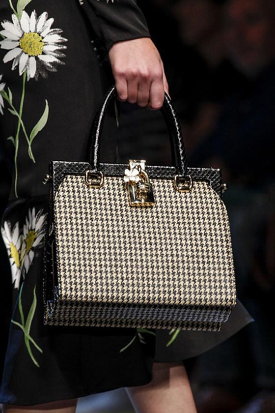 شنطة أنيقة مصممة من التويد ومزدانة بقفل ذهبي من توقيع دولتشي اند غابانا Dolce & Gabbana.