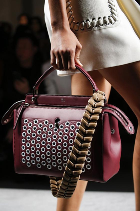شنطة برغندي مزودة بيد قصيرة وحزام كاميل طويل على هيئة ضفيرة من توقيع فندي Fendi.