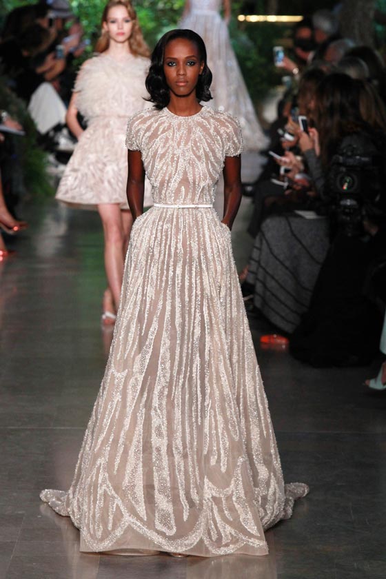 فستان زفاف راقي جدا مطرز بالخرز يشبه فستان سندريلا تصميم ايلي صعب