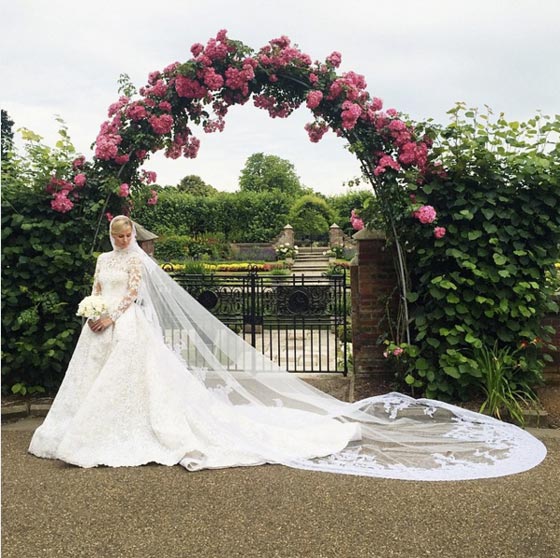 نيكي هيلتون وهي شقيقة باريس هيلتون وهما وريثتا صاحب امبراطورية هيلتون للفنادق العالمية، اختارت فستان زفاف من تصميم "فالنتينو".