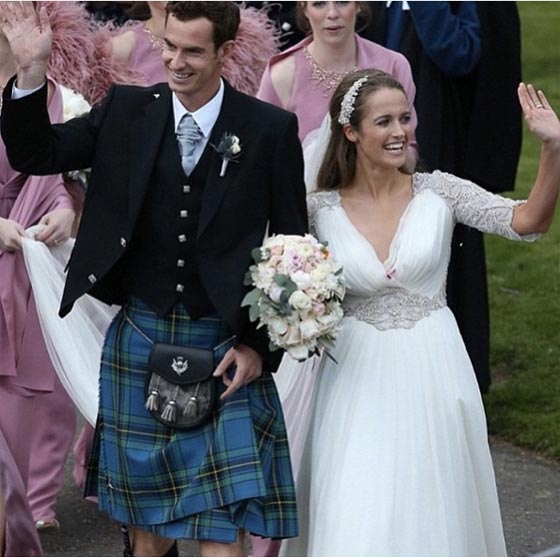 كيم سيرز هي زوجة لاعب التنس الشهير آندي موري وقد ارتدت فستان زفاف باكمام ثلاث ارباع من تصميم جيني بيكهام