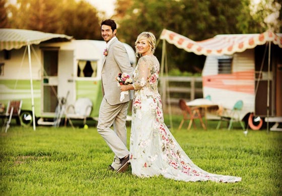 تينا نويلز زوجة الممثل ريتشارد لاوسون اختارت فستان زفاف من تصميم رومونا كيفيزا