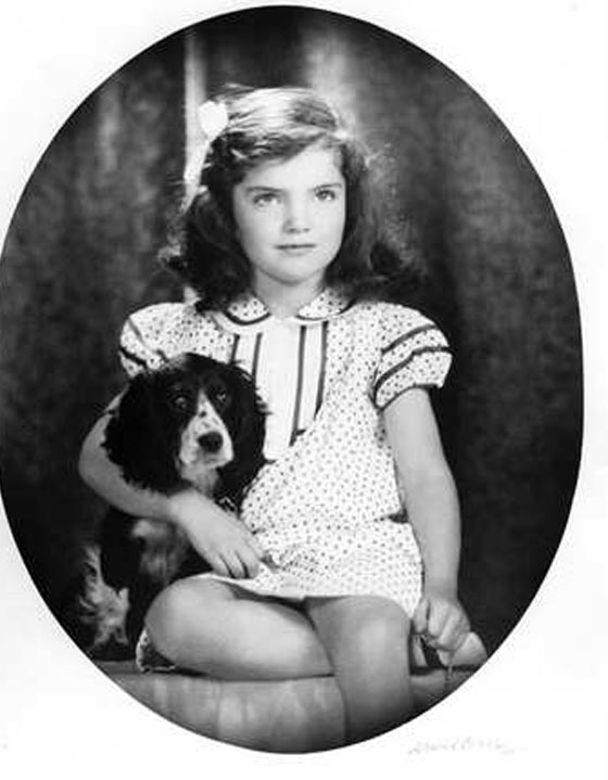 لوالديها جون وجانيت. في هذه الصورة تجلس جاكي في صغرها مع كلبها في العام 1953.