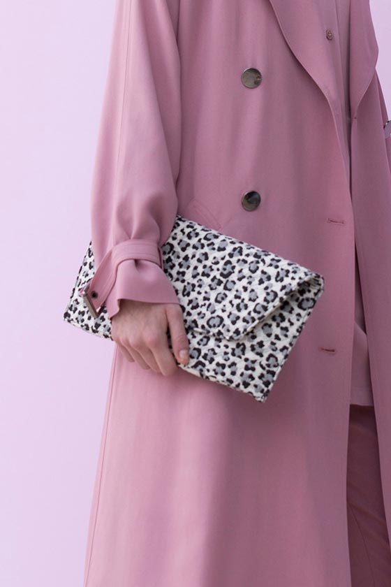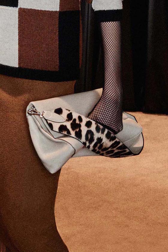 شنطة كلتش بيضاء بنقشات جلد النمر من توقيع Christian Wijnants.