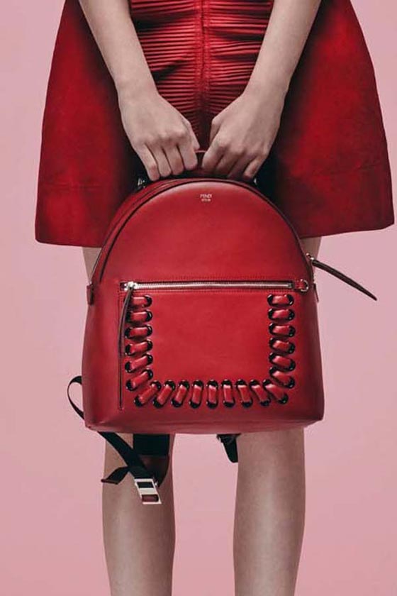 شنطة ظهر حمراء مزودة بسحاب من الأمام من توقيع فندي Fendi.