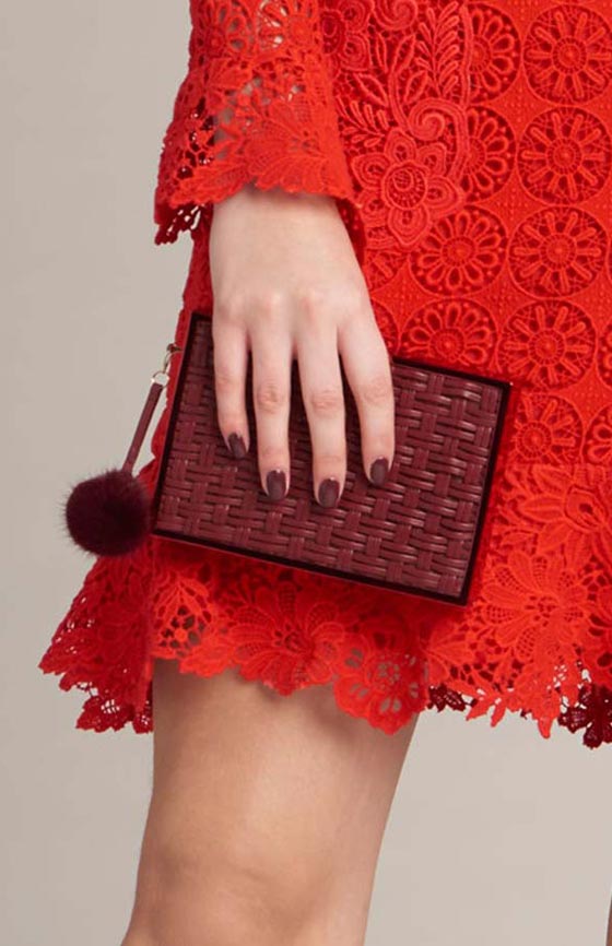 شنطة كلتش برغندي من توقيع مونيك لولييه Monique Lhuillier.