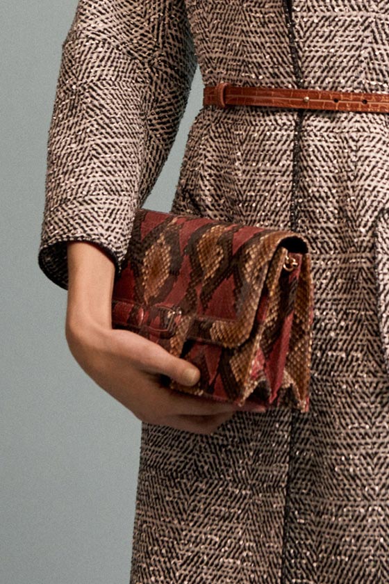 شنطة كلتش بنقشة جلد الأفعى من توقيع أوسكار دي لا رنتا Oscar de la Renta.
