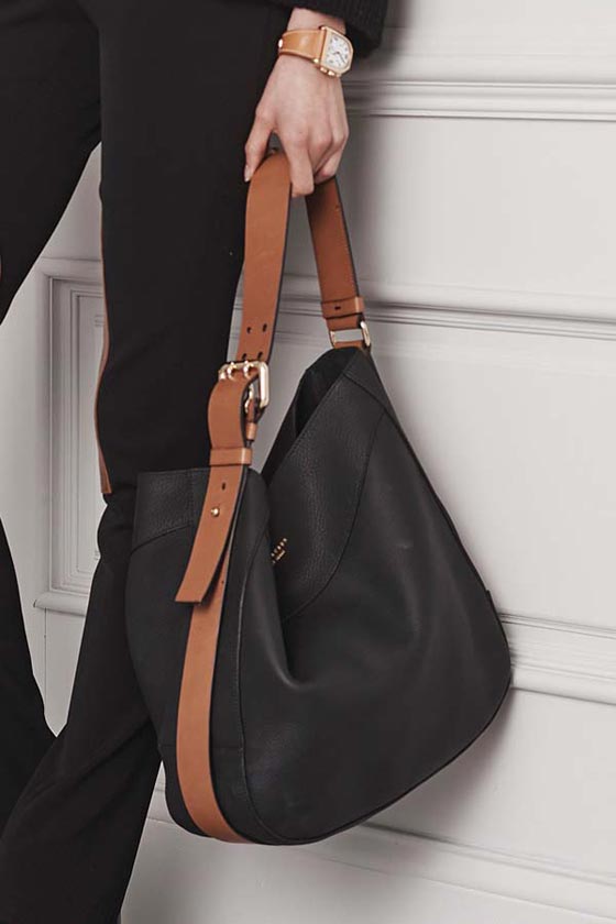 شنطة Shopper سوداء مزودة بيد كاميل من توقيع رالف لورين Ralph Lauren.
