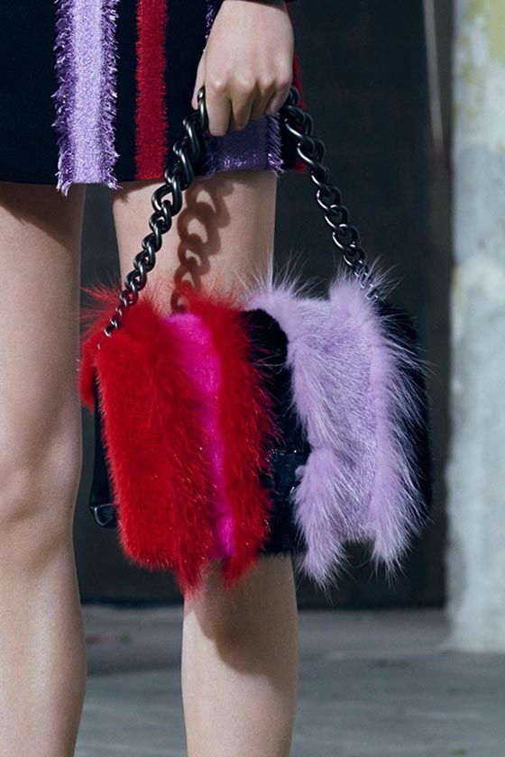 شنطة كتف فاخرة مصممة من الفراء الملون من توقيع فيرساتشي Versace.