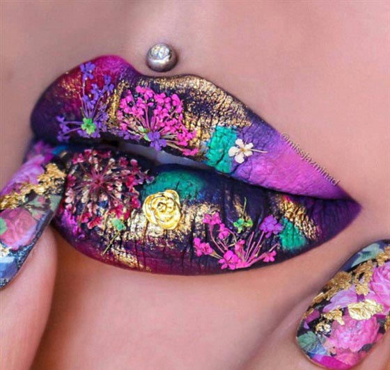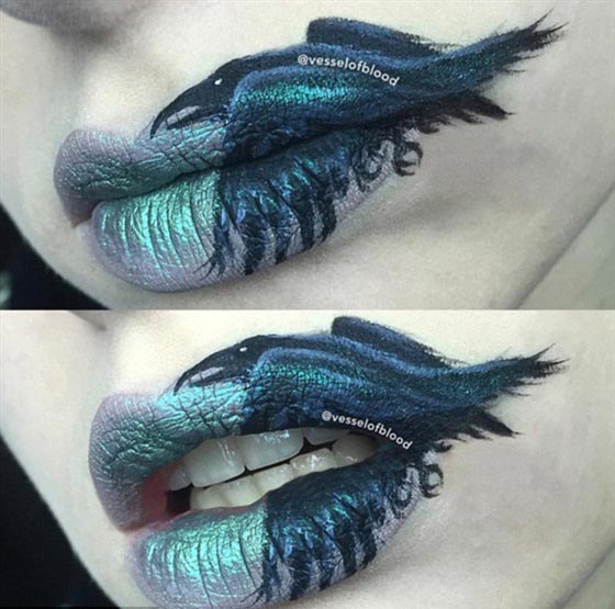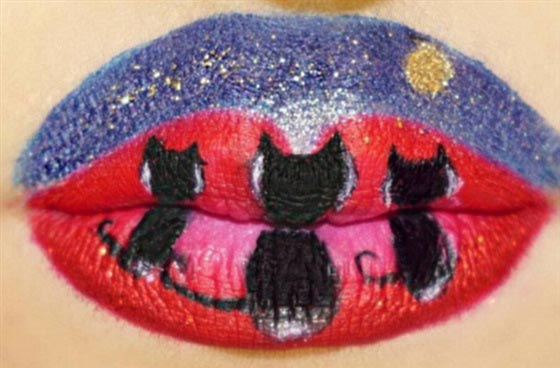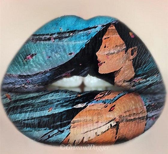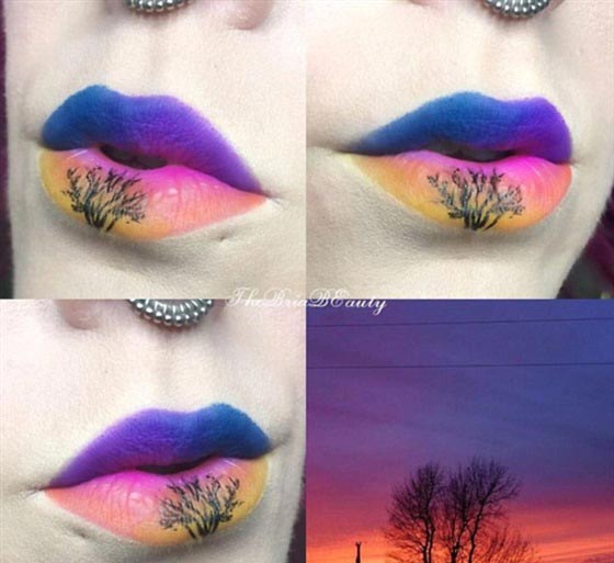 اجتاحت موضة الرسم على الشفاه ضجة عبر الإنترنت بعدما استخدم الفنانون شفاههم كلوحات لتطبيق أفضل الرسومات عليها. وقد استوحى بعض الفنانين الرسومات من مناظر طبيعية كغروب الشمس، وخلية النحل، وغيرها من الرسومات التي بدت واقعية وألوانها صاخبة.