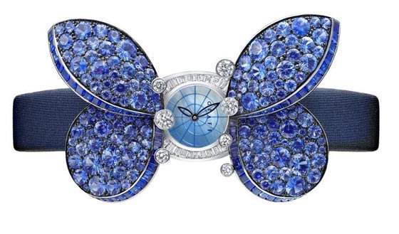 يزيّن ساعة "Princess Butterfly " من ماركة "غراف" جناحين يغطيهما الياقوت الأزرق، وتحيط بالساعة أحجار الألماس. أما العقارب فصنعت من أم اللؤلؤ.