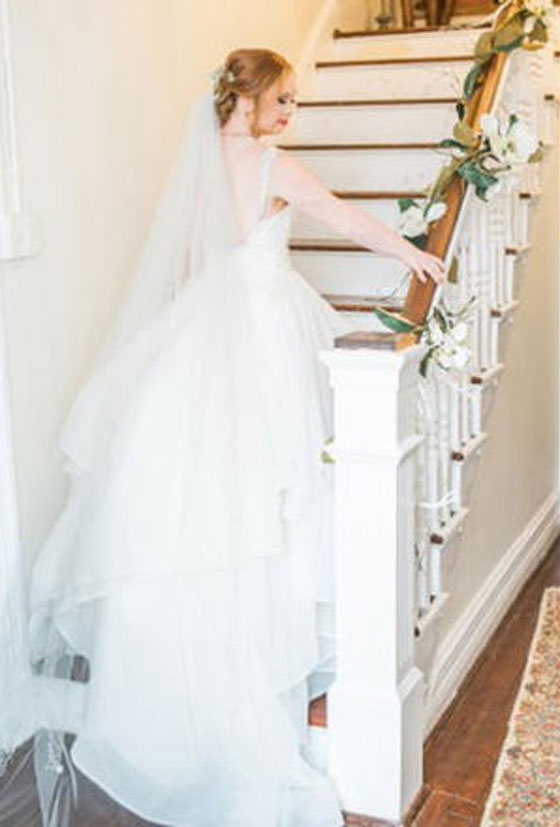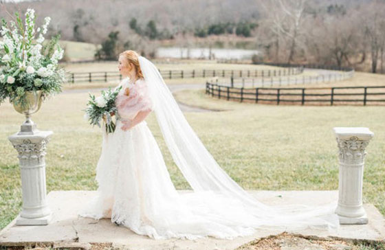 بعرض فساتين الأعراس في موقع لإقامة حفلات زفاف في ولاية فيرجينيا الأمريكية.