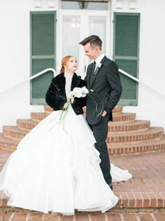 ستيوارت بفستانها المفضل في جلسة التصوير، ترقص مع عارض أزياء يؤدي دور العريس.