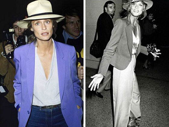 عارضة الأزياء والممثلة الأمريكية لورين هاتون كان لها دائمًا أسلوب خاص بها في الأزياء سواء بإدخال قطع من الملابس الرجالية في الملابس الرسمية لها لتظهر في النهاية بشكل مختلف وأنيق ويقلده النساء من بعدها أو من خلال لبسها لموضة الـ JUMPSUIT بالأقمشة الحريرية المميزة.
