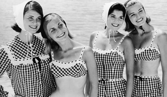 وقدم لباس البحر "بيكيني" في فترة الخمسينيات، شخصية متمايلة إلى النساء. وتبدو مارلين مونرو في شمال الصورة في العام 1951.