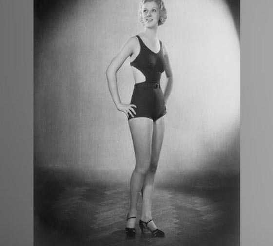 الممثلة الأمريكية بيتي غرابل ترتدي ثوب السباحة في العام 1943.