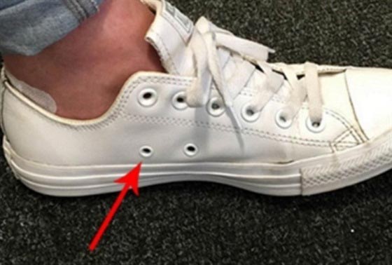 يعتبر الكثيرون أن وجود اثنين من الثقوب الصغيرة على جوانب الأحذية "الكونفرس"، مجرد زخرفة أو للزينة العشوائية، لكن لديها هدفا محددا من وجودها في الواقع. وبالرغم من أن الثقوب تسمح بدخول الهواء للقدم، إلا أن لها استخدام أهم من ذلك، حيث تعمل الثقوب لتثبيت الحذاء بالقدم بطريقة أكثر تماسكا، حيث تجعل الحذاء أكثر إحكاما عن طريق تمرير أربطة الحذاء من خلالهما.