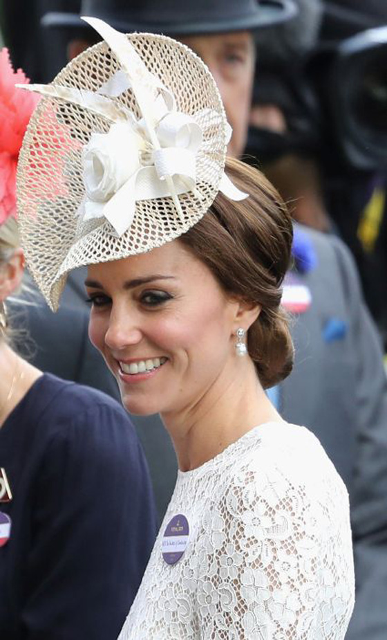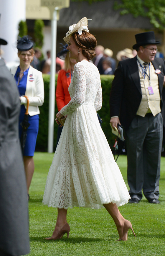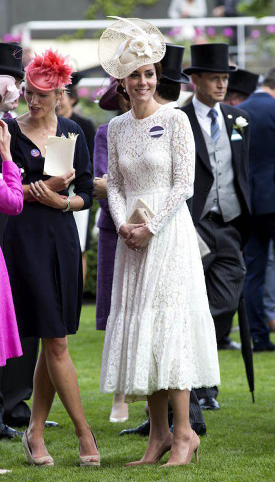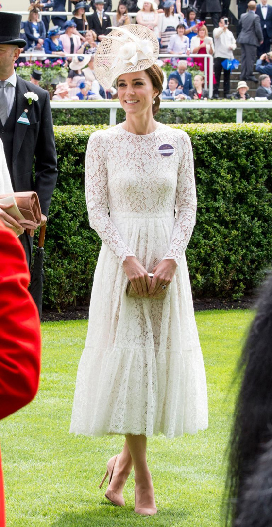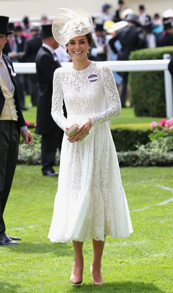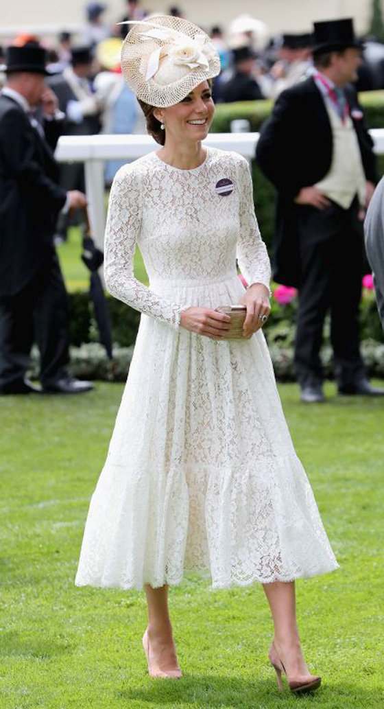 ولم تكن الأميرة هيا صاحبة الإطلالة الملكيّة الوحيدة في هذا الحدث، حيث حضرت دوقة كامبريدج كيت ميديلتون بفستان أبيض أنيق من الدانتيل، وأكملت إطلالتها بقبعة وحذاء باللون اللحمي المحايد، فحصلت على إطلالة أنيقة.