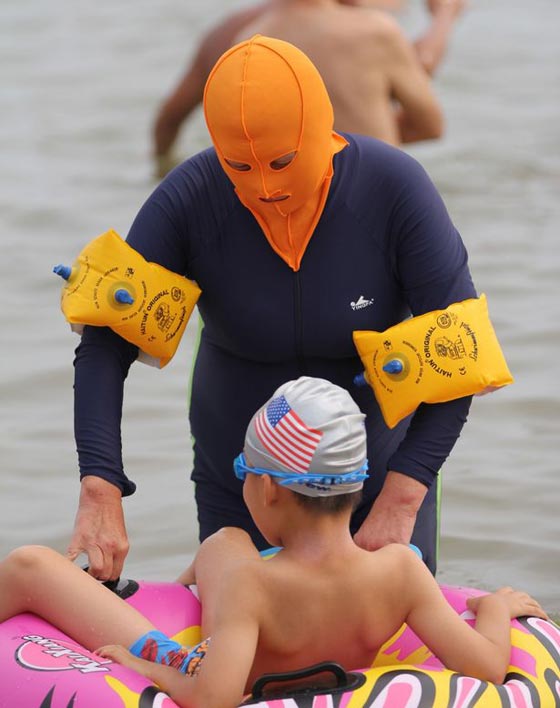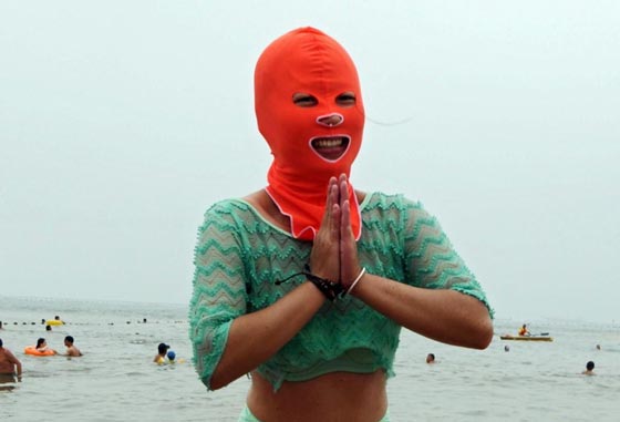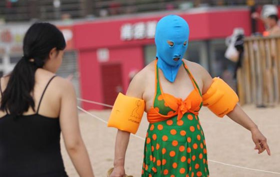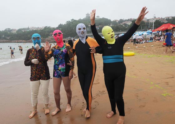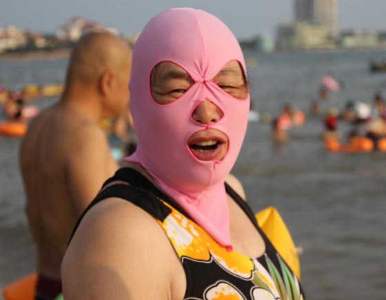 ربما تعود الناس على استخدام الكريم الواقي من الشمس لحماية بشرتهم في أوقات الصيف، لكن النساء في الصين قاومن أشعة الشمس الضارة هذا الصيف بقناع غير عادي. ظهرت لقطات على الإنترنت لمرتادي الشواطئ في منطقة تشينجداو بالصين وهم يرتدون أقنعة جديدة على وجوههن مصنوعة من مواد تستخدم عادة في صنع أزياء السباحة وتهدف لحماية الناس من الأشعة الضارة. وذكرت التقارير أن القناع الجديد يمنع دخول 99.8 % من الأشعة فوق البنفسجية لوجوههن.