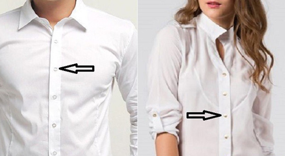 وجود أزرار قميص الرجال على جهة اليمين، بينما قميص النساء على جهة اليسار