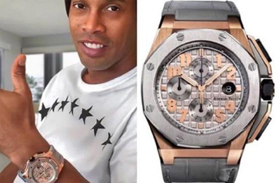 النجم البرازيلي رونالدينيو يرتدي ساعة اوديمار بيغيه كرونوغراف ليبرون جيمس. سعرها 32004 دولار.
