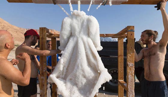 وقد قامت المصورة الفوتوغرافية الإسرائيلية سيغاليت لانداو بصنع هذا الفستان لمشروعها "عروس الملح،" الذي وثّقت فيه تحول فستان أسود إلى أبيض ناصع، بينما التصقت بلورات الملح على القماش على مدى ثلاثة أشهر في العام 2014.