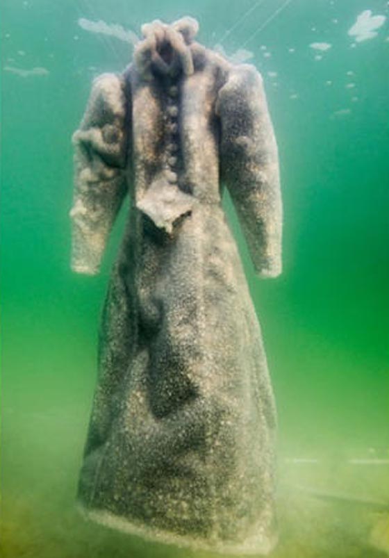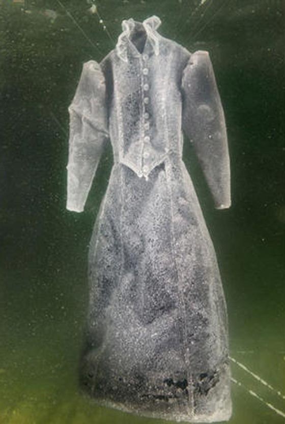 مع مرور الوقت، وزيادة أعداد حبيبات الملح الكريستالية الملتصقة على الفستان، أصبح الفستان أكثر سمكاً من أصله.