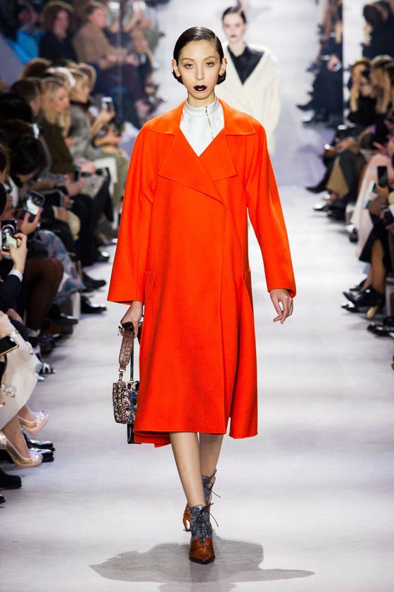 5- الأحمر البرتقالي: هو لون صارخ بامتياز اتخذ شكل معطف لدى Dior وشكل جاكيت ذي قصّة عسكريّة لدى Givenchy.
