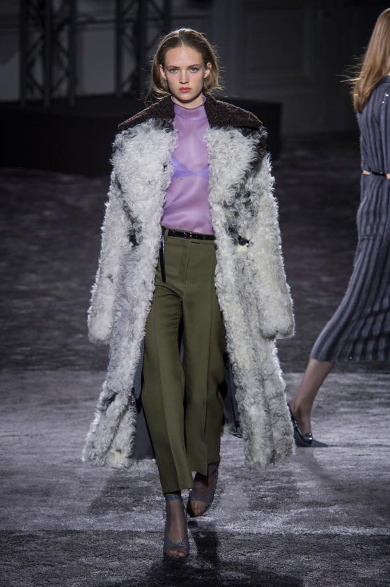 12- البنفسجي: هو لون فخم وأنيق، وقد زيّن العديد من الإطلالات في عروض هذا الخريف وقد لفتنا في عروض Elie Saab وCarven.