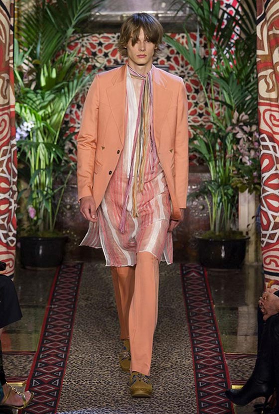 كما تميّزت الأزياء الرجالية بألوانها ونقشاتها المبتكرة وتصاميمها التي تبتعد كلّ البعد عن الكلاسيكية .أما بالنسبة للإكسسوارات، فقد تنوّعت بين أوشحة، وعقود، وأحزمة رافقت معظم الإطلالات. وقد تجلّى الطابع الهيبي في جميع الأحذية والحقائب التي رافقت هذه التصاميم. تعرّفوا فيما يلي على أجمل تصاميم Cavalli للربيع والصيف المقبلين بانتظار أن نكتشف ماذا ستختار النجمة هيفا وهبي منها كونها واحدة من أبرز محبّي هذه الدار الإيطالية الفاخرة.