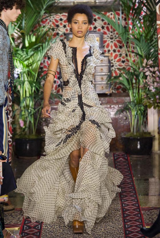 الستايل الغجري البوهيمي الفاخر خيّم على عرض "روبيرتو كافالي" لربيع وصيف2017 الذي تمّ تقديمه أخيراً ضمن فعاليات أسبوع ميلانو للموضة. وقد صرّح بيتر دونداس المدير الإبداعي للدار أن التحضير لهذه المجموعة بدأ من خلال متابعته للفن الفولكلوري الأميركي، الذي أضاف إليه مشاهدات أخرى احتفظ فيها من رحلاته إلى أنحاء مختلفة من العالم وترجمها عبر محاولة الجمع بين التناقضات. 64 إطلالة قدّمتها دار Roberto Cavalli للنساء والرجال على السواء، أفرطت في الجمع بين أنماط وستايلات مختلفة بلغت حدّ المبالغة في العديد من الأحيان.