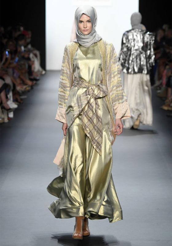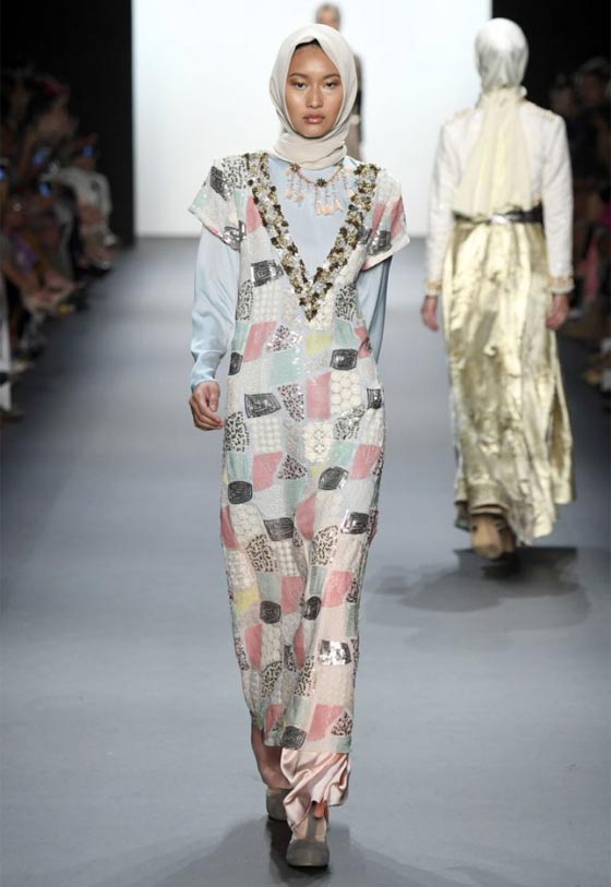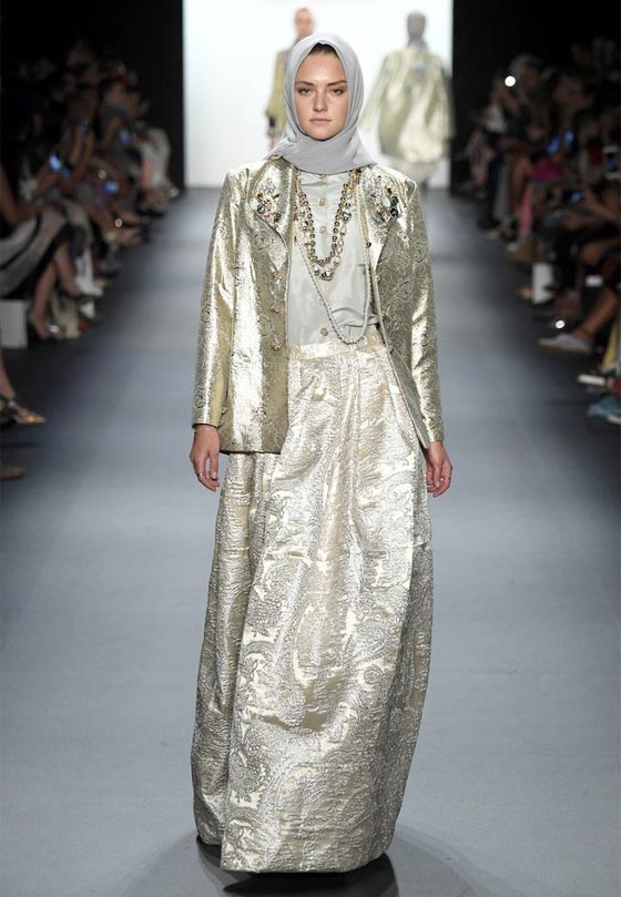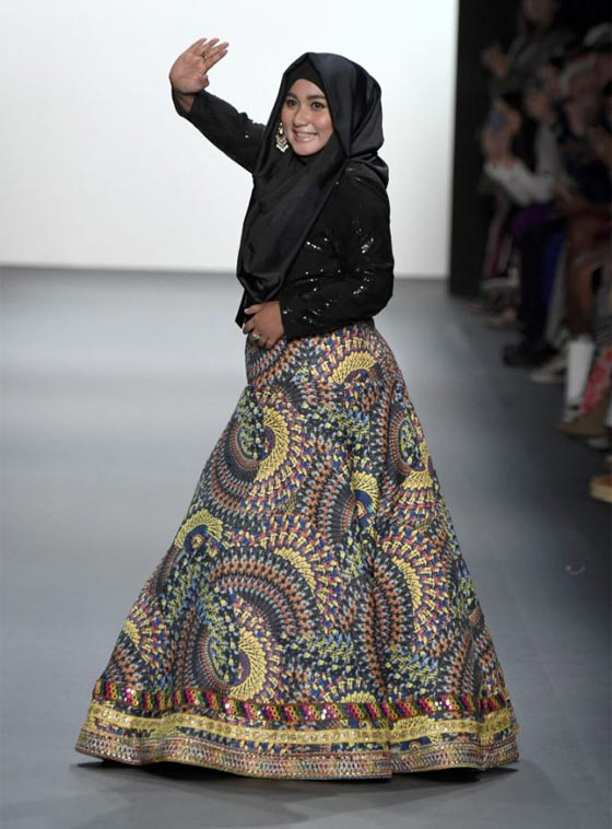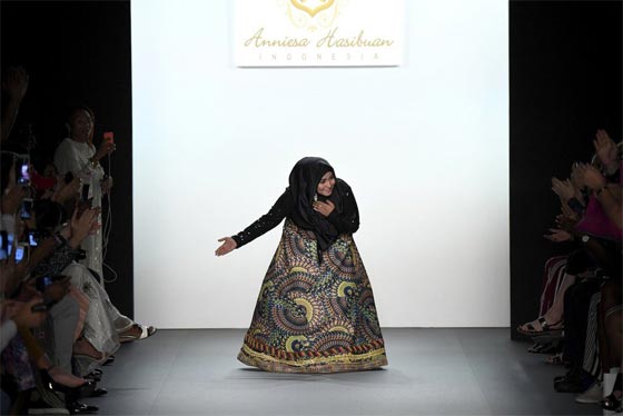 قدمت المصممة الإندونيسية أنيسة حسيبوان مجموعتها الجديدة، لأول مرة خلال أسبوع الموضة في نيويورك، حيث سارت عارضات الأزياء على المدرج، وهن يرتدين الحجاب الأنيق.