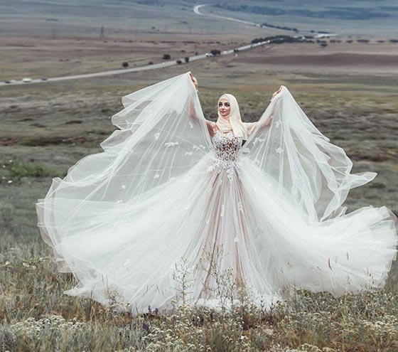 عندما يتعلق الأمر بحفلات الزفاف والعرائس وفساتين الزفاف، فكل ثقافة لديها تقليد مختلف. في الدول الغربية، على سبيل المثال، تلبس العروس فستان الزفاف الأبيض التقليدي. في الهند ترتدي العروس الفستان الوردي أو الاحمر. أما بالنسبة للعرائس المسلمات المحجبات، فلا بد لهن من ارتداء فستان محتشم مع الحجاب، ولكن هذا لا يعني ان الفستان سيكون اقل جمالا!
