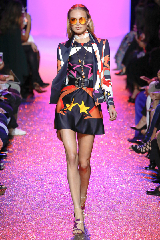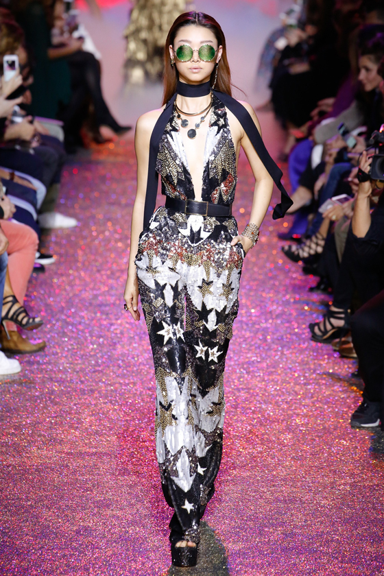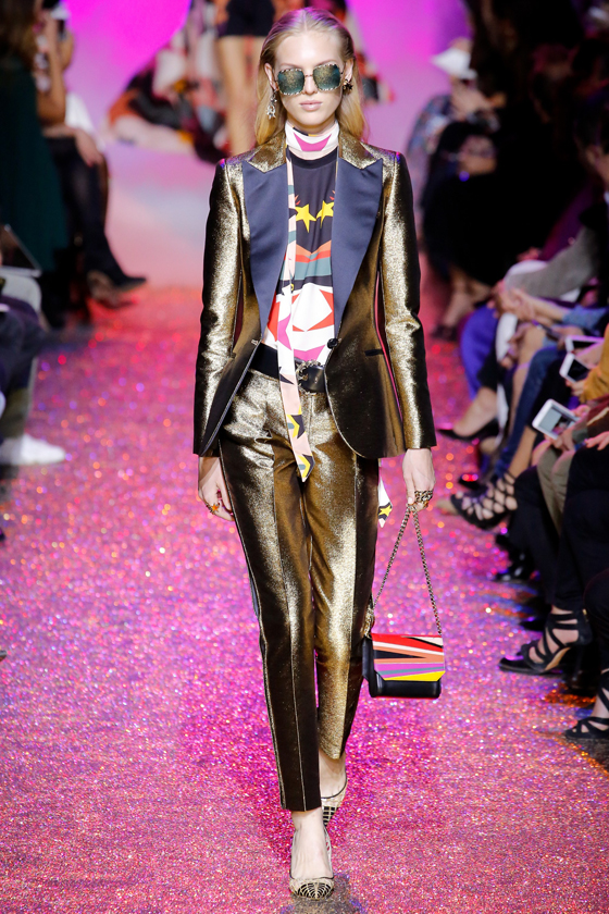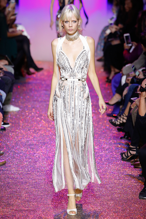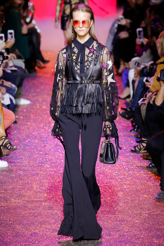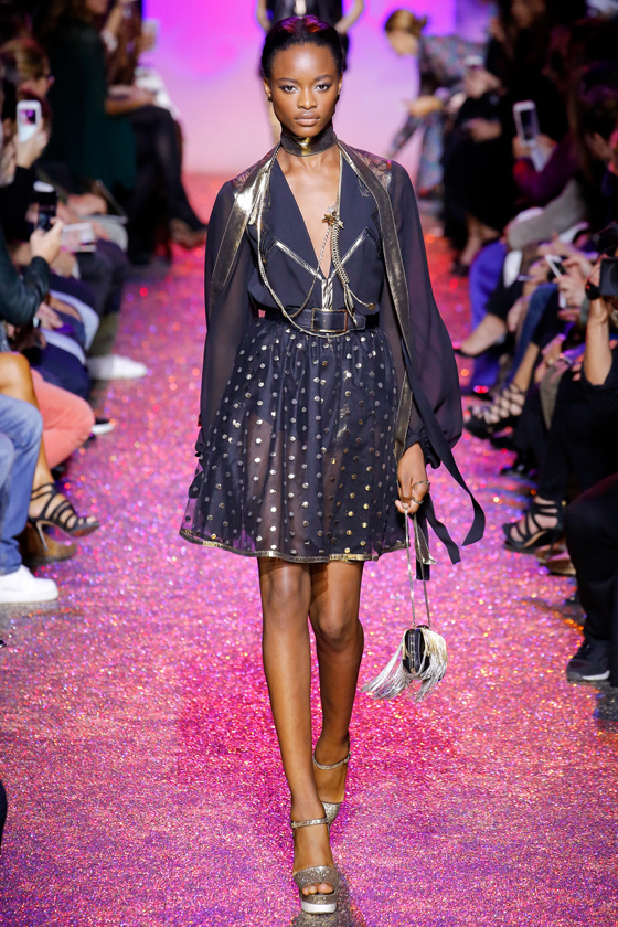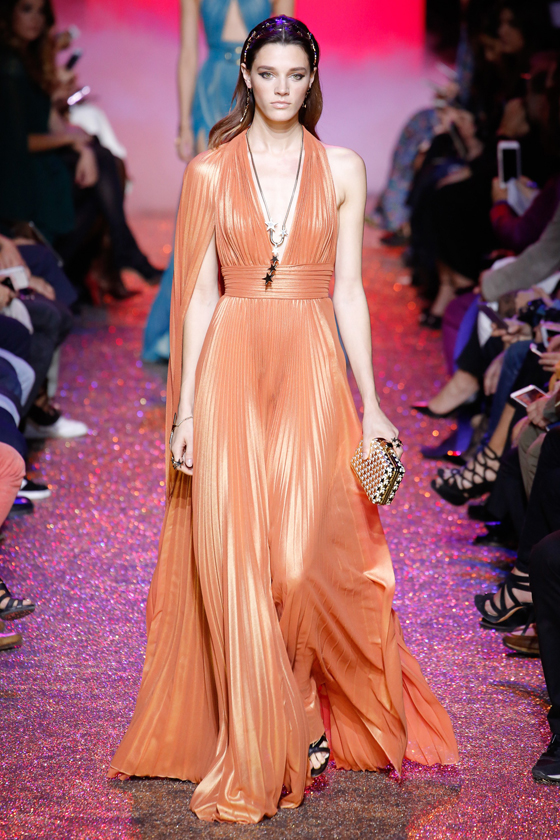 إنّه عرض أزياء إيلي صعب الذي ننتظره من موسمٍ إلى آخر ولا نفرّق ما إذا كان موسم الأزياء الراقية أو الجاهزة حيث أنّنا ندرك أنّ هذا المصمّم اللبناني العالمي لا يمكن إلا أن يقدّم الأجمل والتصاميم الأكثر أناقة مهما كان الموسم وسواء كانت المجموعة للأزياء الجاهزة أو الراقية. بدأ العرض مع موسيقى صاخبة وحيويّة أعادت الحضور إلى أيام الديسكو إلى حين بدأت تظهر عارضات الأزياء متألقات بأزياء من الترتر أي الباييت والقماش المطبّع بالنجوم والشراريب المزيّنة بدورها، حتى بدا أنّ إيلي صعب اختار فعلاً أن يعيد الحضور إلى زمن الديسكو وأيام السبعينيات ويقدّم مجموعة مستوحاة من الديسكو.