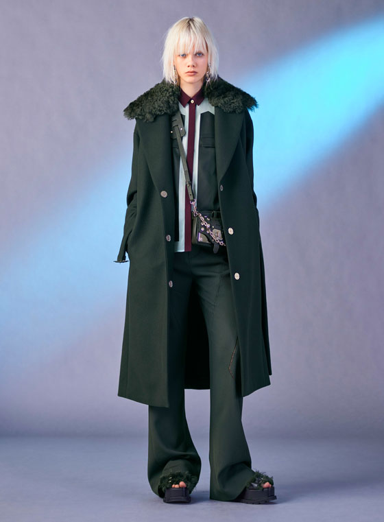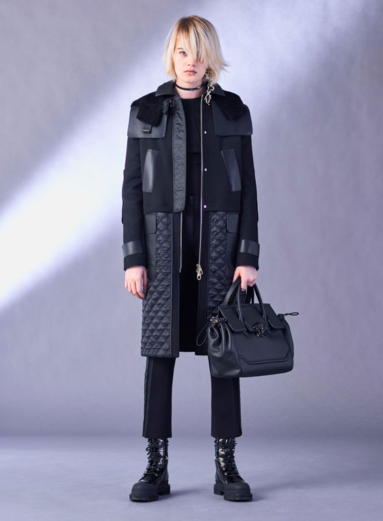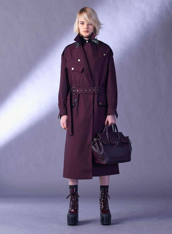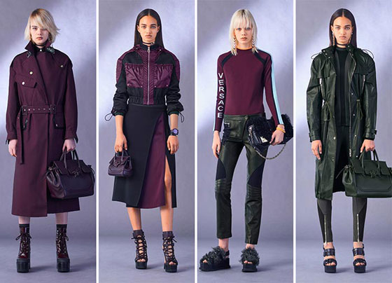 شعار Versace زيّن "التوبات" المصنوعة من الليكرا والبنطلونات الجلدية، وقد تكرّر ظهور السترات الرياضية المعروفة بالـBomber Jacket واختلط القماش المبطّن مع الكريب الكلاسيكي في تصميم بعض المعاطف. أما الأثواب المتوسطة الطول فتزيّنت بشق جانبي طويل ظهر أيضاً في مقدّمة السراويل الرسمية التي تم تنسيقها مع سترات قصيرة تزيّنت بالفرو.