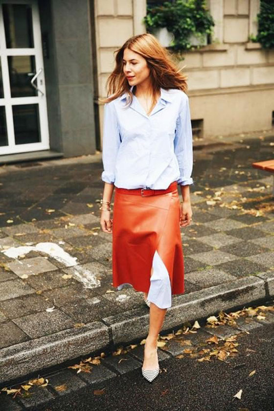 هذا التنسيق يصبح أجمل باستخدام فستان فضفاض فوقه تنورة ضيقة، أو بالاستعانة بقميص رسمي طويل مع تنورة باللفّ حول الخصر، الأمر يعود إليك، فأبدعي بالطبقات.