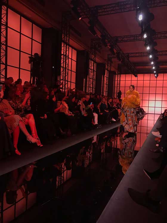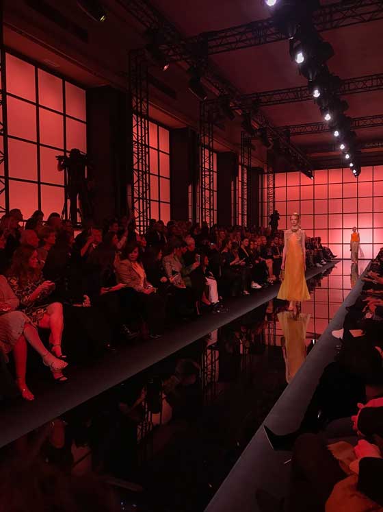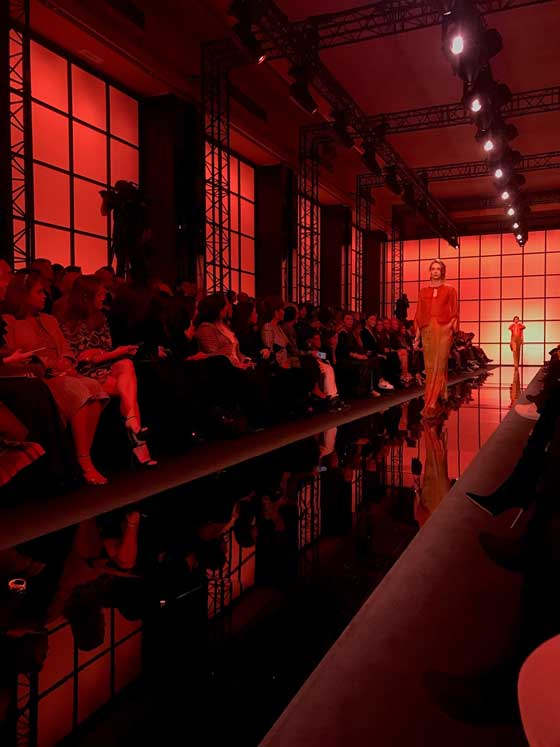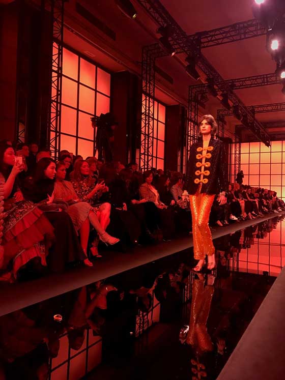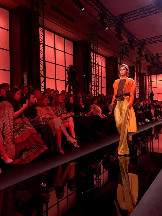 وشمل العرض سترات قصيرة تارة وطويلة تارة أخرى تناسقت مع سراويل المجموعة، أما التنانير فطُرز على البعض منها أحجار كرسيتال، فبدت لامعة. أما الإكسسوارات فاقتصرت على الحقائب التي عُرفت بها دار ارماني. في القسم الثاني من العرض، شوهدت فساتين سهرة سوداء أنيقة كستها تطاريز لؤلؤية وأحزمة عريضة تناسب امرأة تحب الأناقة والجرأة في مناسباتها الخاصة. وقد حضر العرض العديد من المشاهير، أبرزهم الممثلة الأسترالية نيكول كيدمان.