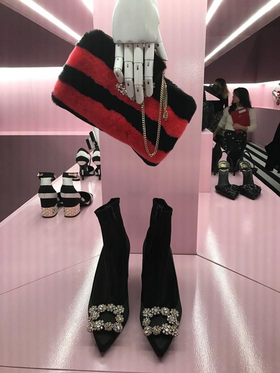 قدم مصمم دار روجر فيفيير برونو فريسون مجموعته الجديدة في الأحذية والحقائب النسائية لخريف شتاء 2017 -2018 مجموعة مستوحاة من الديكورات الداخلية للبيوت. فجسد ذلك في قطع بدت وكأنها صنعت من أوراق الجدران المطبوع عليها جلد النمر تارة والسجاد العجمي تارة أخرى، كما شوهدت قطع تمثل ديكورات البيوت العثمانية القديمة، زينت بعض القطع بريش النعام ما أضفى عليها مظهرا مميزا أنيقا وأُخرى رصعت بالجواهر والماس تناسب امرأة تحب الأناقة في مناسبتها الليلية. الجدير بالذكر أن المصمم حافظ على لمسة Vivier في صنع مجموعته الجديدة فالمربع الذي عرفت به هذه الدار كان حاضرا في معظم القطع النسائية.