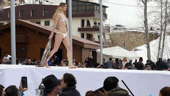 شهدت جبال منطقة فاريا اللبنانية، الأحد، عرض أزياء "تزلج وموضة 2017"، للملابس الداخلية النسائية وملابس البحر، وسط ثلوج هذه المنطقة السياحية. وأصبحت عروض الملابس الداخلية النسائية في منطقة فاريا السياحية ومنتجع التزلج المشهور حدثا سنويا يتوافد عليه مئات الزائرين للاستمتاع بمزيج من الشمس والثلوج وابتكارات الأزياء.